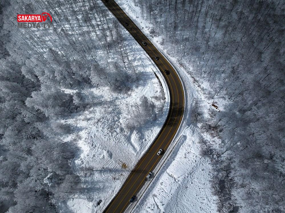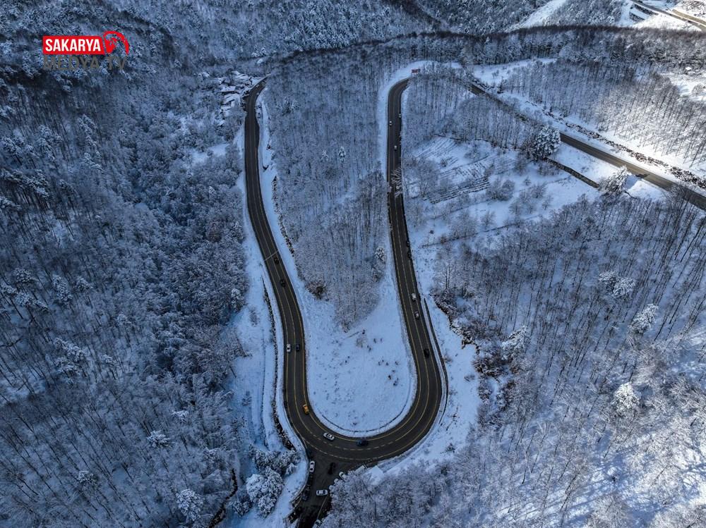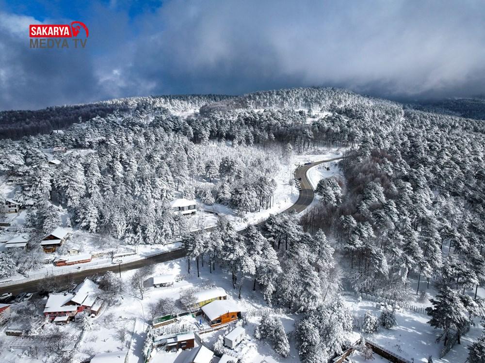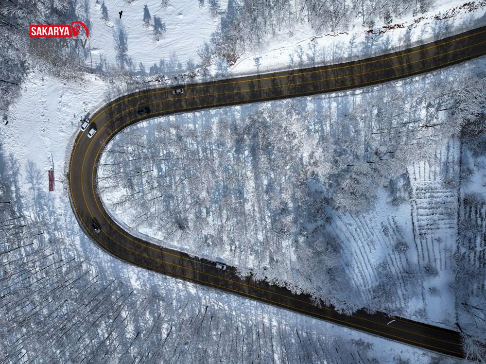 Uludağ, kar yağışının akabinde beyaz örtüsü ve kıvrımlı yollarıyla dikkati çeken bir görünüme kavuştu.