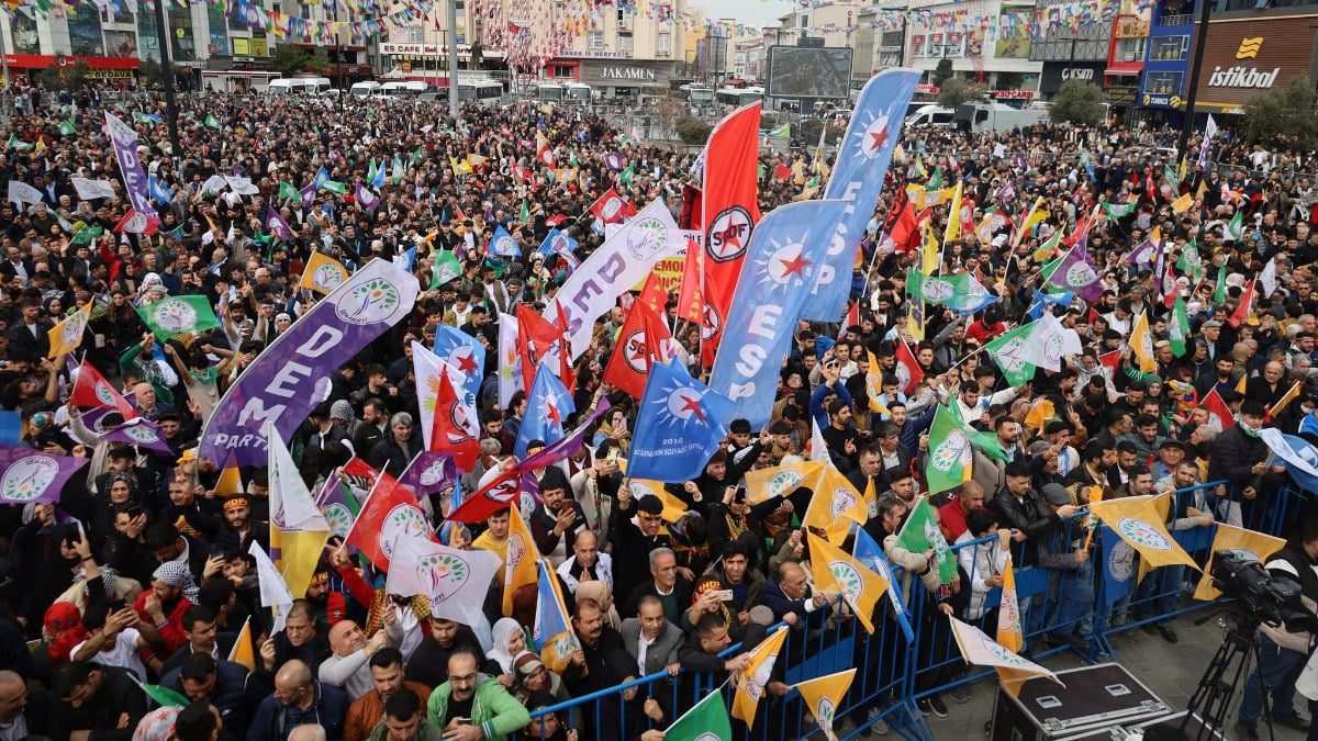 DEM Parti Esenyurt’ta miting düzenledi: Terör elebaşının posterini açtılar
