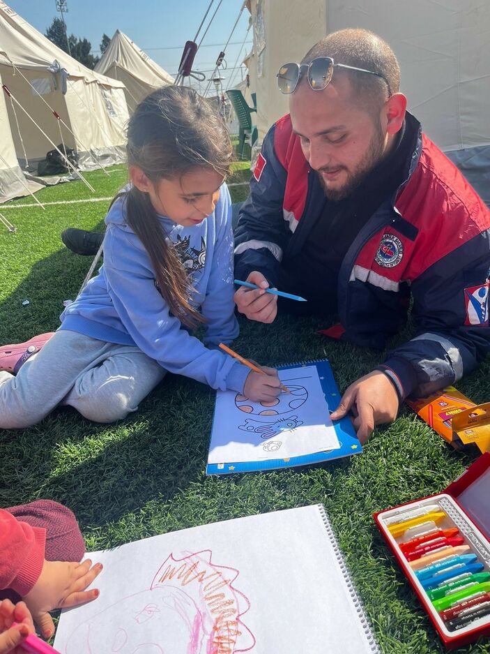 Afyonkarahisar UMKE’nin sosyal medya hesabından yapılan çalışmalara ilişkin yapılan açıklamada, şu ifadeler kullanıldı;Bölgeye Afyonkarahisar’ dan yeni sevk edilen UMKE ekipleri yanlarında getirdikleri çocuk materyalleri ile yaptığı aktiviteler ile hem çadır kenti, hem çocukların dünyasını renklendirdi.