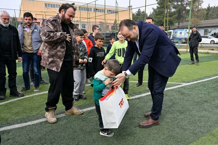 Bölgedeki 12 Şubat Stadı Çadır Kent, Sütçü İmam Üniversitesi Karacasu Kampüsü Konteyner Kent ve Vali Saim Çotur Stadyumu Çadır Kent’e yapılan ziyaretlerde çocuklarla oyunlar oynandı, onlara hediyeler verildi.
