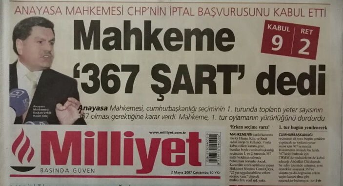 İyi Parti Genel Başkanı Meral Akşener’in “Altılı Masa”yı “Beşli Masa”ya indiren hamlesi, “muhalif mahalle”deki siyasetin kimyasını bozdu. Gelişmeler, kamuoyunun bir kısmı için “şaşırtıcı” olsa da aslında 2007 ve 2018 Cumhurbaşkanlığı seçimleri öncesinde yaşananlar hatırlanınca ortadaki durum aslında çok da “sürpriz” gibi durmuyor. Cumhuriyet Mitingleri, 367 garabeti ve “e-muhtıra”yla süreç zehirlenmişti2007 Cumhurbaşkanlığı seçimi, Türkiye’nin 11’inci Cumhurbaşkanının belirlenmesi için yapılan seçimdi. 2000 yılında seçilen 10’uncu Cumhurbaşkanı Ahmet Necdet Sezer’in görev süresi 16 Mayıs 2007’de dolmaktaydı. Alınan seçim kararıyla Cumhurbaşkanlığı adaylığı için son başvuru tarihi 25 Nisan, ilk tur oylama günü de 27 Nisan olarak belirlenmişti. Seçim dönemine girilirken, CHP’nin organize ettiği “Cumhuriyet Mitingleri”yle başörtüsü ve laiklik tartışmaları en gergin noktalara taşınmıştı. Ayrıca geçtiğimiz günlerde hayatını kaybeden emekli Yargıtay Başsavcısı Sabih Kanadoğlu’nun Cumhuriyet gazetesinde kaleme aldığı yazıda, Anayasal hükmün ve TBMM İç Tüzüğü’nün açık hükümlerine rağmen “Cumhurbaşkanlığı seçimi için ikinci turda salt çoğunluk olan 276 oyun yetmeyeceğini, en az 367 katılımın gerekeceğini” iddia etmişti. Ana muhalefet partisi CHP de bu iddiayı sahiplenmişti. AK Parti yönetimi ise bu tartışmalara takılmadan, o dönem AK Parti Kayseri Milletvekili ve Dışişleri Bakanı olan Abdullah Gül’ü Cumhurbaşkanı adayı göstermiş, ilk tur oylama da 27 Nisan’da yapılmıştı. Gül, muhalefetin bir kısmının Genel Kurul salonuna girmediği birinci turda 357 oy almış, aynı gün CHP seçimi Anayasa Mahkemesi’ne taşırken (Mahkeme, 1 Mayıs’ta CHP’yi “haklı” bulmuştu), 27 Nisan’ı 28 Nisan’a bağlayan gece Genelkurmay Başkanlığı ise o meşhur “e-muhtıra”yı yayınlamıştı. Muhtırada, “Seçimlerde laikliğin tartışma konusu yapıldığı ve Genelkurmayın bu konuda taraf olduğu” görüşü dile getirilmişti. Sonuçta ise birinci tur oylamanın iptal edilmesinin ardından toplantı yeter sayısının bulunamayışı nedeniyle 11. Cumhurbaşkanı seçilememişti.