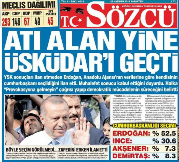 Seçimlerde Muharrem İnce yüzde 30,64, Meral Akşener yüzde 7,29, Selahattin Demirtaş yüzde 8,40, Temel Karamollaoğlu yüzde 0,89, Doğu Perinçek ise yüzde 0,20 oy oranlarına sahip olmuşlardı. Milletvekili seçimlerinde ise AK Parti 295, CHP 146, HDP 67, MHP 49, İP 43 milletvekili çıkarmıştı.