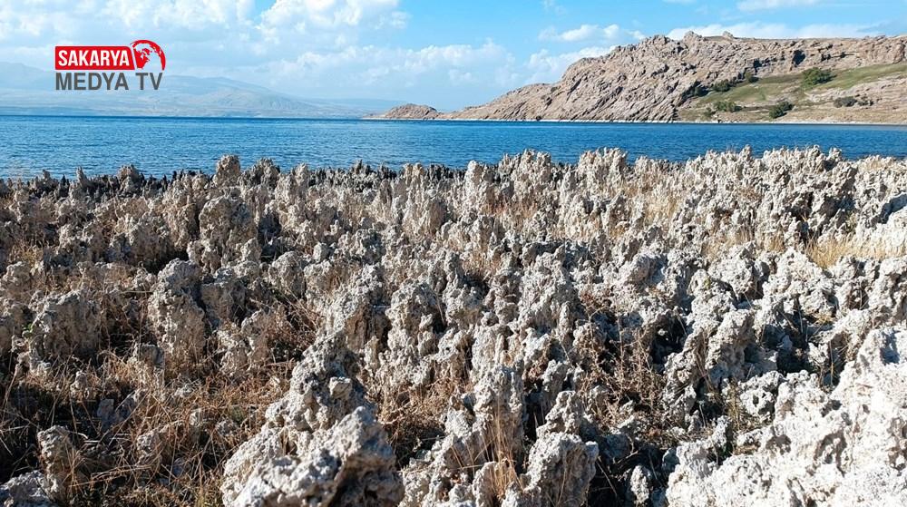 Küresel iklim değişikliğinden etkilenen yerlerden biri olan Van Gölü’ndeki su düzeyinde düşme sürerken; çekilme ile eski yerleşim alanları da ortaya çıkıyor.