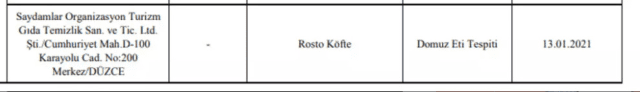Düzce’de toplu yemek hizmeti veren Saydamlar Organizasyon Turizm isimli firmanın müşterileri için hazırladığı rosto köftenin içerisinde domuz eti tespit edildi. KYK yurtlarında öğrencilere yemek hizmeti de veren firmanın yaptığı açıklama ise skandala başka bir boyut kazandırdı.