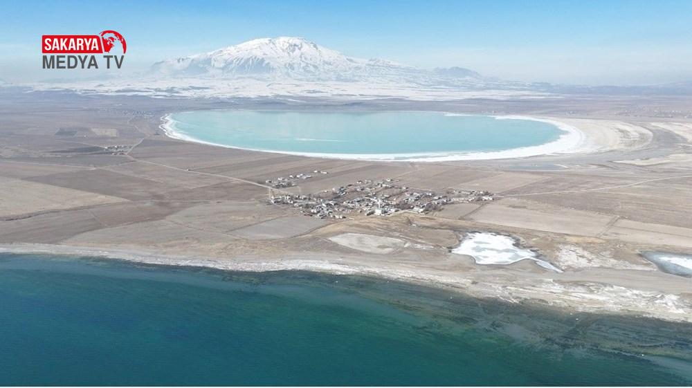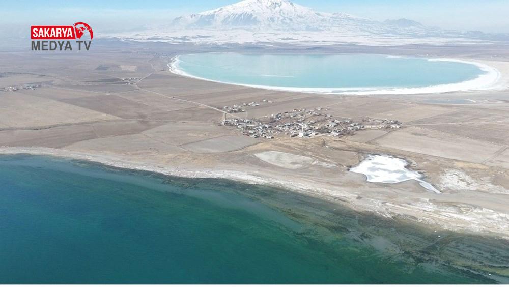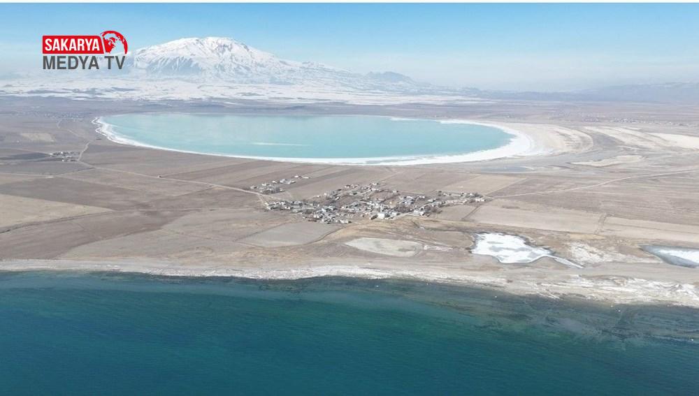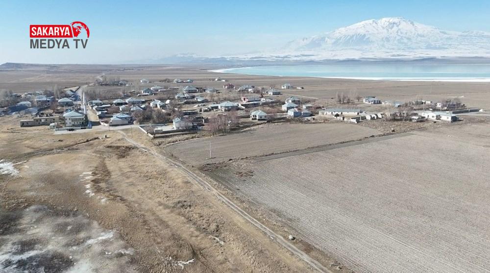 Van Gölü ile Arın gölü ortasında bulunan köy, dronla çekilen imgeler ile harika bir görüntüye sahip.