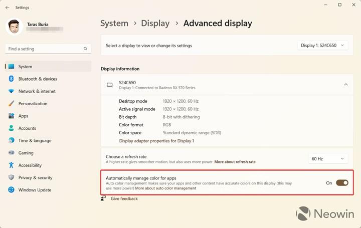 Genişletilmiş Otomatik Renk Yönetimi şimdi 25309 derlemesi ile Windows Insider kullanıcılarına sunulmaya başlandı. Bu özelliği Ayarlar > Sistem > Ekran > Gelişmiş ekran ayarları kısmında bulunan “Uygulamalar için rengi otomatik olarak yönet” seçeneğini açarak etkinleştirebilirsiniz. Ancak, ACM’yi etkinleştirmenin ekran kartınızın daha fazla güç tüketmesine neden olacağını belirtmemiz gerek. Özellikle bu ayar dizüstü bilgisayarınızın pil ömrünü olumsuz etkileyecektir. Renk yönetimi iyileştirmeleri, standart 8 bit sRGB paneller de dahil olmak üzere çoğu monitörde çalışacak ancak, bilgisayarınızın belirli GPU gereksinimlerini karşılaması gerekiyor. Nvidia için GTX 10 serisi ve daha güncel modeller, AMD için RX 400 serisi ve üstü kartlar ve Intel için DG1 ve daha yeni grafik kartlar gereksinimler arasında bulunuyor. Ayrıca WDDM sürücünüzün de 3.0 veya üstü olması lazım. WDDM sürücü versiyonunu öğrenmek için Win + R yapıp “dxdiag” yazmanız ve açılan penceren Ekran sekmesine gelmeniz yeterli.