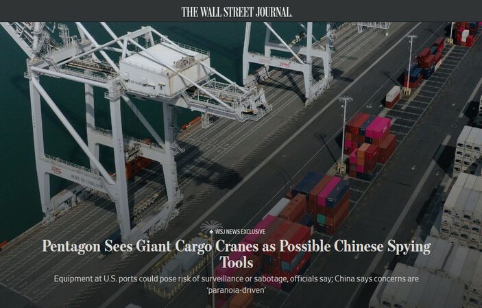 Wall Street Journal (WSJ), Çin’in, ABD limanlarındaki vinçleriyle casusluk ve sabotaj faaliyetleri yürütebileceği iddialarını gündeme getirdi.