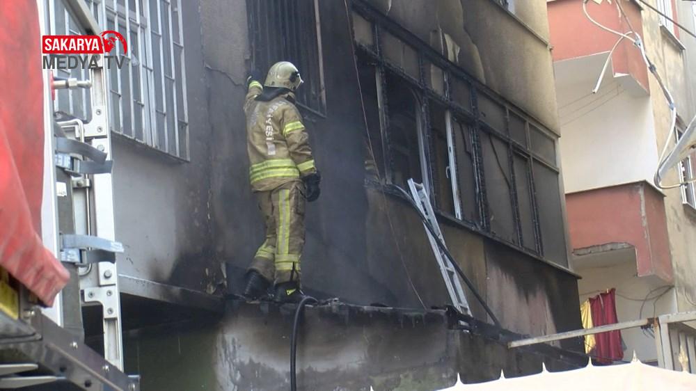 Apartman sakinleri binayı tahliye ederken itfaiye ekipleri yangını kısa sürede söndürdü.
