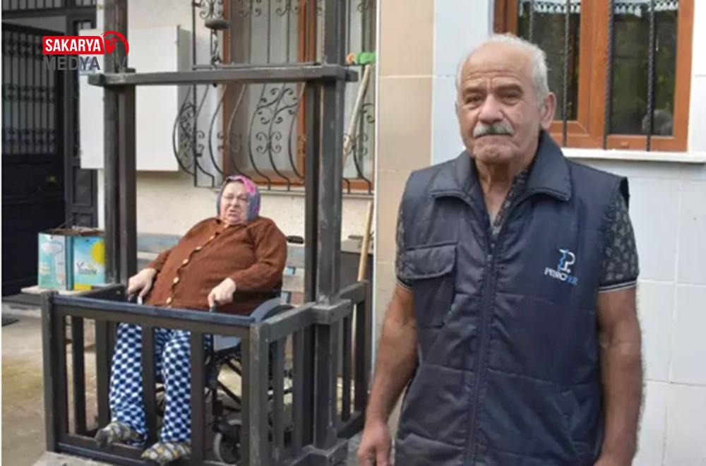 Eşi Meryem Okur’u meskeninin dışına yaptığı asansör dışarı çıkaran Okur, “Bu asansör sayesinde eşimi meskenden dışarı çıkarabiliyorum.