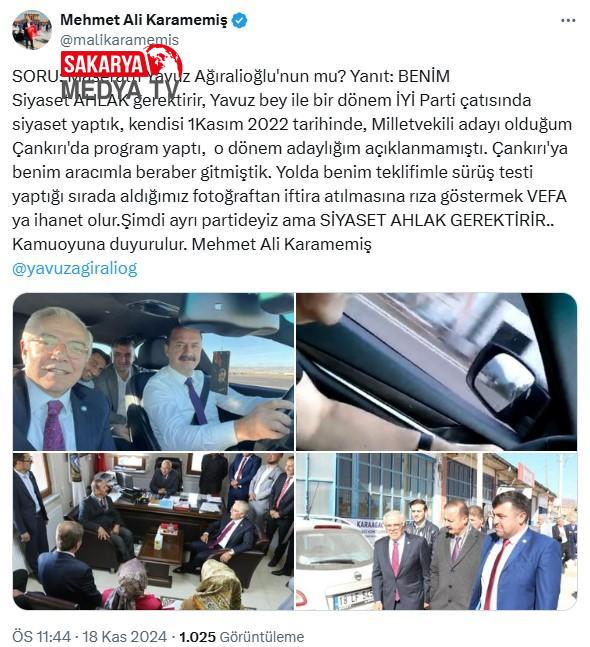 Sosyal medya hesabından yaptığı açıklamada Karamemiş şu sözleri kullandı: “Siyaset ahlak gerektirir, Yavuz bey ile bir dönem İYİ Parti çatısında siyaset yaptık, kendisi 1 Kasım 2022 tarihinde, Milletvekili adayı olduğum Çankırı’da program yaptı,o periyot adaylığım açıklanmamıştı. Çankırı’ya benim aracımla birlikte gitmiştik.