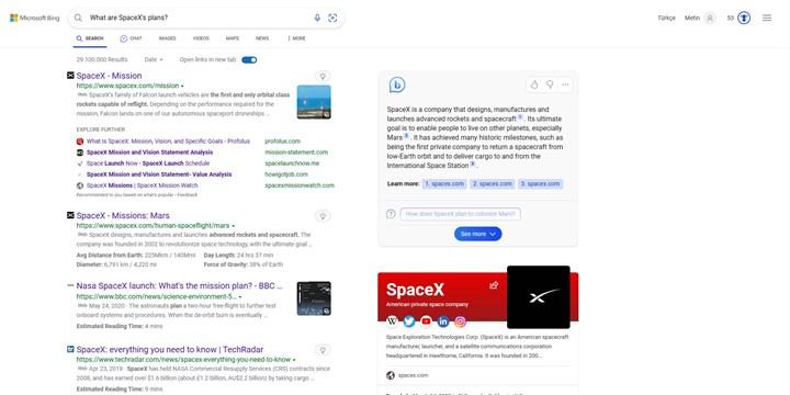 Daha önceki haberlerimizde de bahsettiğimiz üzere Microsoft, arama konusunda Google’ı gözüne kestirmiş durumda. OpenAI’ın devrimsel ChatGPT ve arkasında GPT-3 teknolojisi ise firma için büyük bir fırsat olarak görüldü. Microsoft, yaptığı uzun yıllı ve milyarlarca dolarlık yatırım sonrasında OpenAI’ın teknolojisini Bing arama motoruna ekledi. Microsoft’un yeni Bing’i şimdilik test aşamasında ve sınırlı sayıda kişi tarafından kullanılabiliyor. Bu beta test sürecine katılmak için bekleme listesine buradan kaydolabilirsiniz. Yeni Bing’in yetenekleri ve sundukları yaptığım testlerde oldukça güçlü görünüyor ve ChatGPT ile kıyasladığımızda sohbetin daha sezgisel olduğu anlaşılıyor. Yeni Bing ile yaptığımız bazı Türkçe sohbet kesitleri ise şöyle: