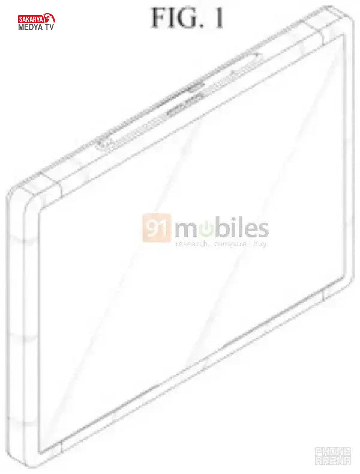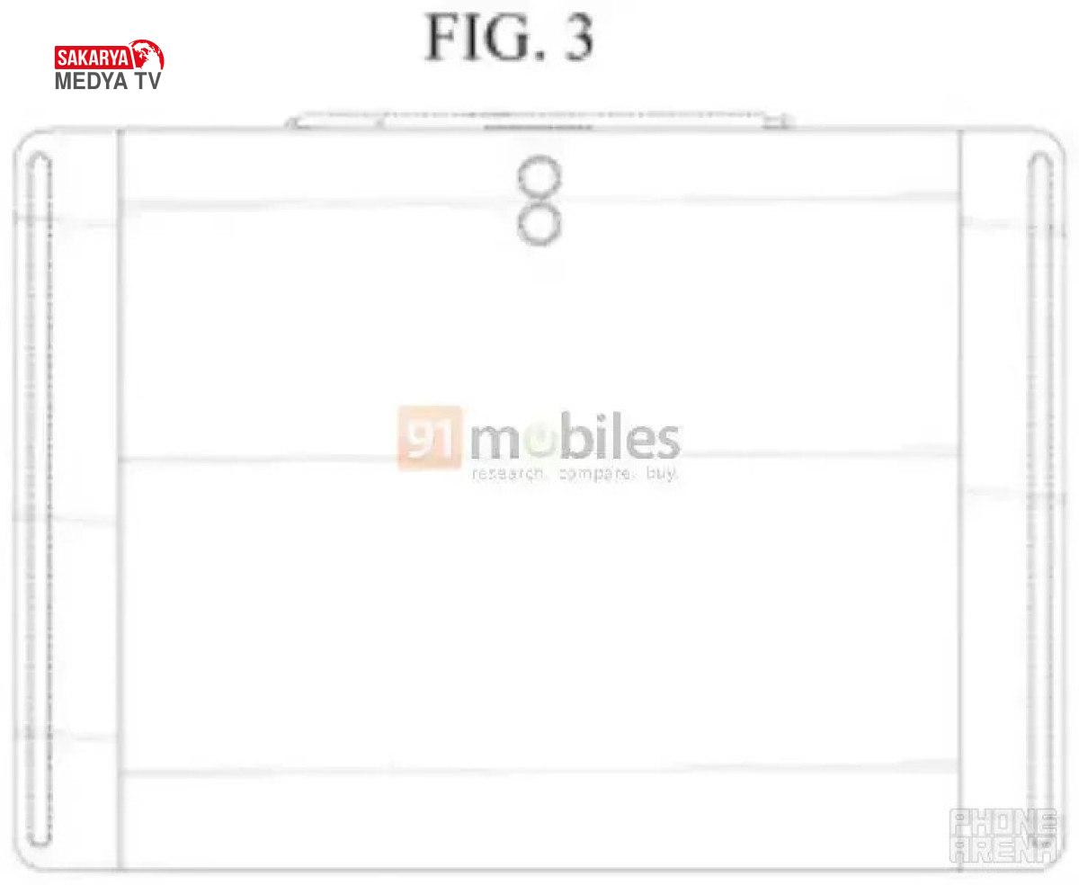 Patent müracaatında yer alan çizimler, tabletin ekranının nasıl katlanacağını ve açılacağını gösteriyor.