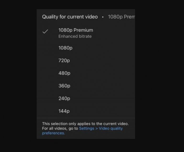 Yüksek bit oranlı yeni 1080p seçeneği ise kullanıcıların daha yüksek kaliteli video izleme isteğini 1440p veya 2160p seçeneğine gerek kalmadan karşılayabilecek.
