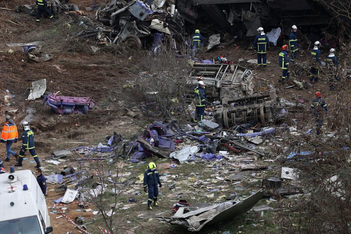 Yunan halkı, tren kazasında kaybettiği canların yasını tutuyor.. Yunanistan’ın Larissa kentinin kuzeyinde yer alan Tempi bölgesinde yük treni ile yolcu treninin kafa kafaya çarpışması sonucu 36 kişinin hayatını kaybettiği, kazanın ardından 3 gün ulusal yas ilan edilmesine karar verildi. Buna göre 1 Mart-3 Mart arasında tüm kamu binalarında bayraklar yarıya indirilirken, halka açık etkinlikler iptal edildi.