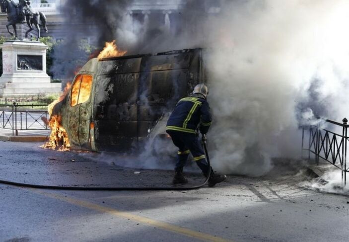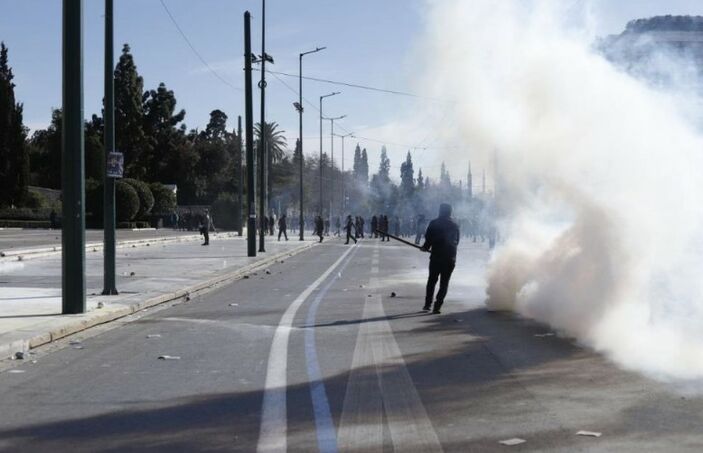 Parlamento binasının bulunduğu Sintagma Meydanı’na kadar devam eden yürüyüş esnasında zaman zaman tansiyon yükseldi.