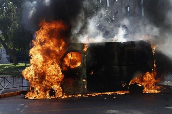 Göstericiler ve polis arasında yaşanan çatışmada dükkanlar ve otobüs durakları zarar görürken, bir araç ise ateşe verildi. Olay yerine gelen itfaiye yanan araca müdahale etti.