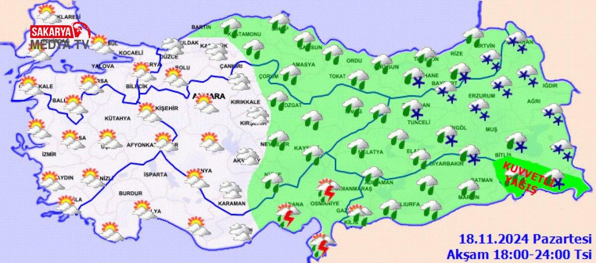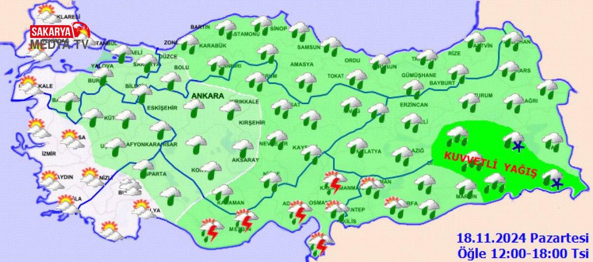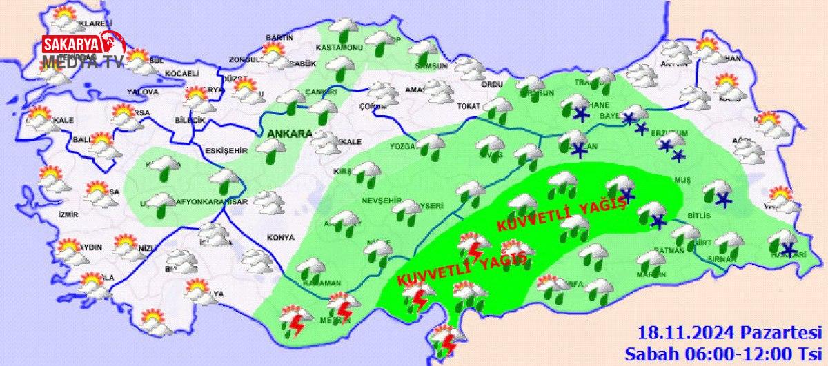 Parçalı ve çok bulutlu, Orta ve Doğu Akdeniz ile Isparta etraflarının sağanak ve yer yer gök gürültülü sağanak yağışlı geçeceği varsayım ediliyor. Yağışların, Doğu Akdeniz’de yer yer kuvvetli olması bekleniyor.