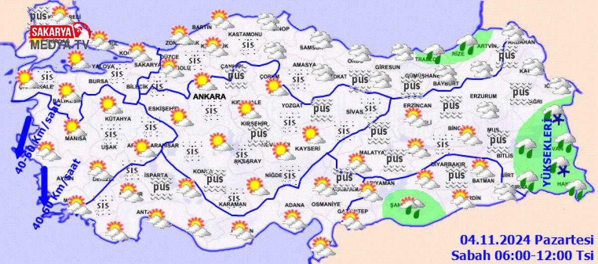 Parçalı ve az bulutlu geçeceği kestirim ediliyor. Rüzgarın; bölgenin kıyı kesitlerinde kuzey ve kuzeydoğu istikametlerden kuvvetli olarak (40-60 km/saat) esmesi bekleniyor. Sabah ve gece saatlerinde bölgenin iç kısımlarında pus ve yer yer sis bekleniyor.
