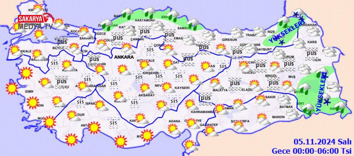 Parçalı yer yer çok bulutlu, gece saatlerinde bölgenin kıyı bölümlerinin yağmur ve sağanak yağışlı geçeceği iddia ediliyor. Rüzgarın; bölgenin kıyılarında kuzey taraflardan kuvvetli olarak (40-60 km/saat) esmesi bekleniyor. Sabah ve gece saatlerinde bölgenin iç bölümlerinde pus ve yer yer sis bekleniyor. BOLU °C, 10°CParçalı bulutluDÜZCE °C, 14°CParçalı bulutluSİNOP °C, 15°CParçalı yer yer çok bulutlu, gece saatlerinde yağmur ve sağanak yağışlıZONGULDAK °C, 13°CParçalı yer yer çok bulutlu, gece saatlerinde yağmur ve sağanak yağışlı