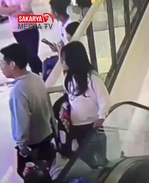 Kadın, istikrarını kaybederek yürüyen merdivenin hareketiyle sürüklenmeye başladı. Basamaklar ile korkuluk ortasındaki boşluktan düşmemek için son bir eforla korkuluğu tutmaya çalıştı. Fakat etraftaki beşerler, yanlarında gelişen olayın farkına varamadıkları için bayana yardım etmeye fırsat bulamadı.