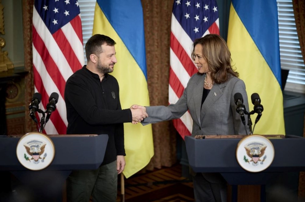 Ukrayna Devlet Başkanı Volodimir Zelenski, başkent Washington’da ABD Lideri Joe Biden, Lider Adayı Kamala Harris ile görüşme yaptı. Ukraynalı başkan, bu görüşmeler sırasında uzun vakittir bahsedilen zafer planını sundu. Ukrayna Devlet Başkanlığı Basın Ofisi’nden yapılan açıklamada, “Ukrayna Devlet Başkanı Volodimir Zelenski, Harris ile bir ortaya gelerek kendisine zafer planını sundu” sözlerine yer verildi. Zelenski’nin Kamala Harris’e birinci Barış Tepesi’ne iştiraki ve ABD’nin Ukrayna’ya başından beri sağladığı sarsılmaz dayanak için teşekkür ettiği aktarıldı. Görüşme sırasında Zelenski, zafer planının detaylarını paylaştı.