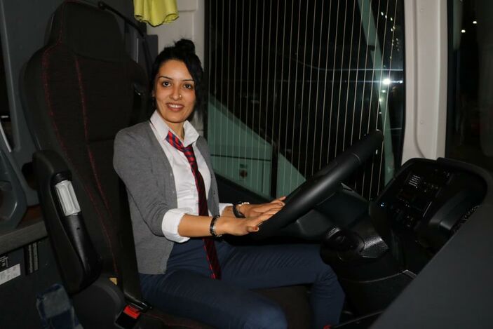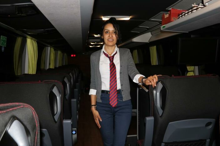 “29 yaşındayım, bekarım. 10 senedir hosteslik hayatım oldu. İki haftadır kaptanlığa geçiş yaptım. Aslında ben biraz daha araba meraklısı olduğum için böyle oldu. Ailemde otobüsçü yoktu araba merakımdan dolayı oldu. Hostesliği yaparken arabaya daha aşina olunca neden kaptanlık yapmayayım dedim. Aslında hiç heyecanlanmadım.