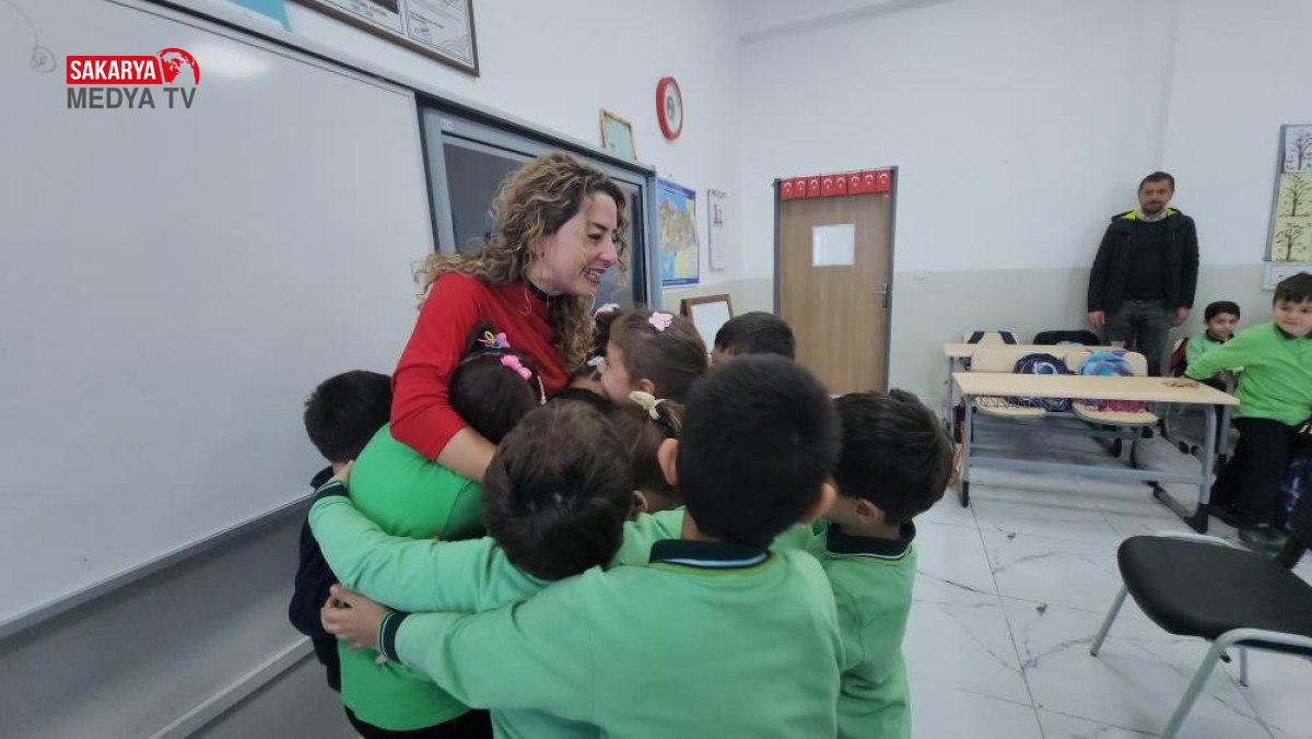 Kocaaslan da gözyaşlarıyla birlikte memnunluğunu kendisine sarılan öğrencileriyle paylaştı.